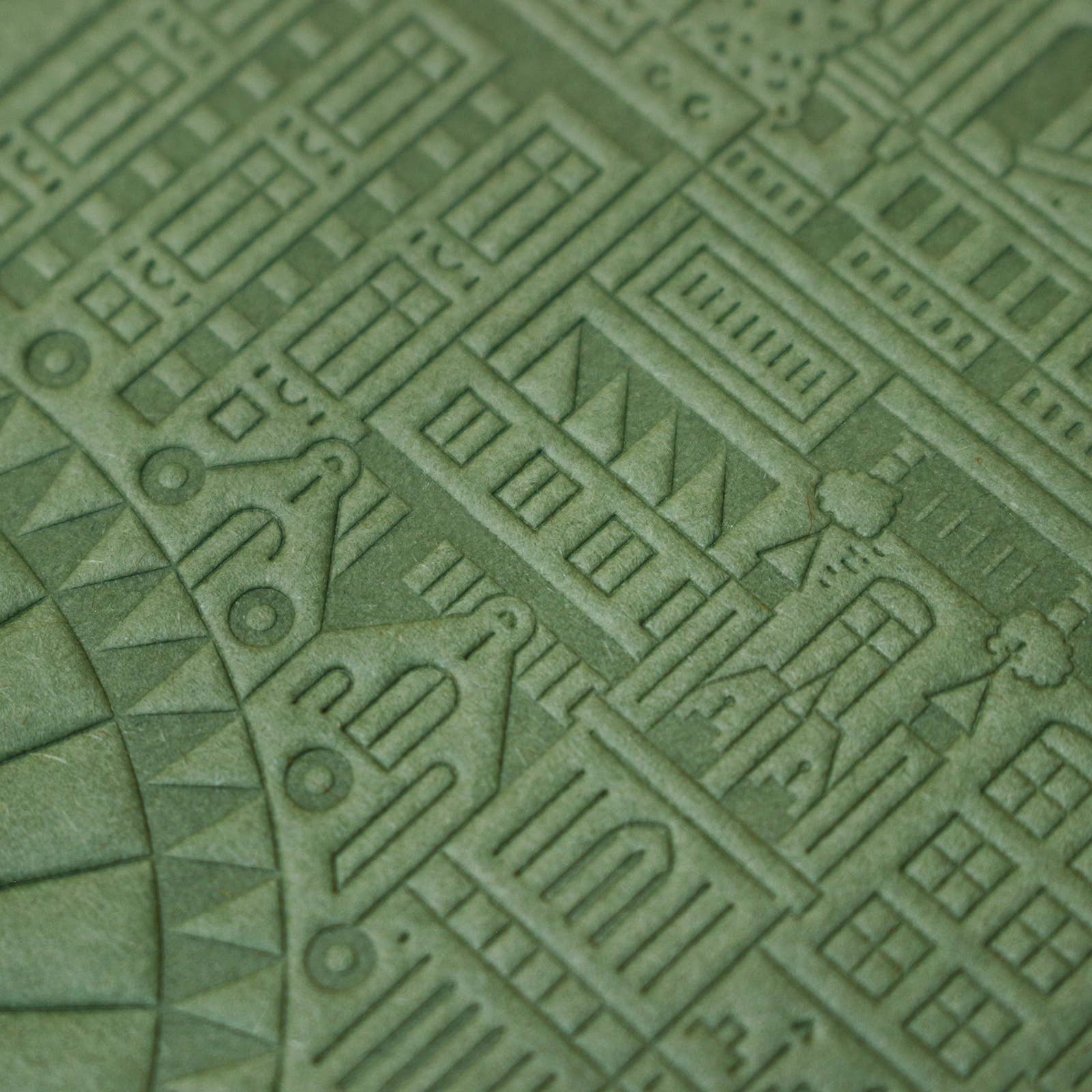 The cover is hand-pressed, leaving a lasting impression on the cover, and hopefully on you too. The spine is also embossed with the name of the city.